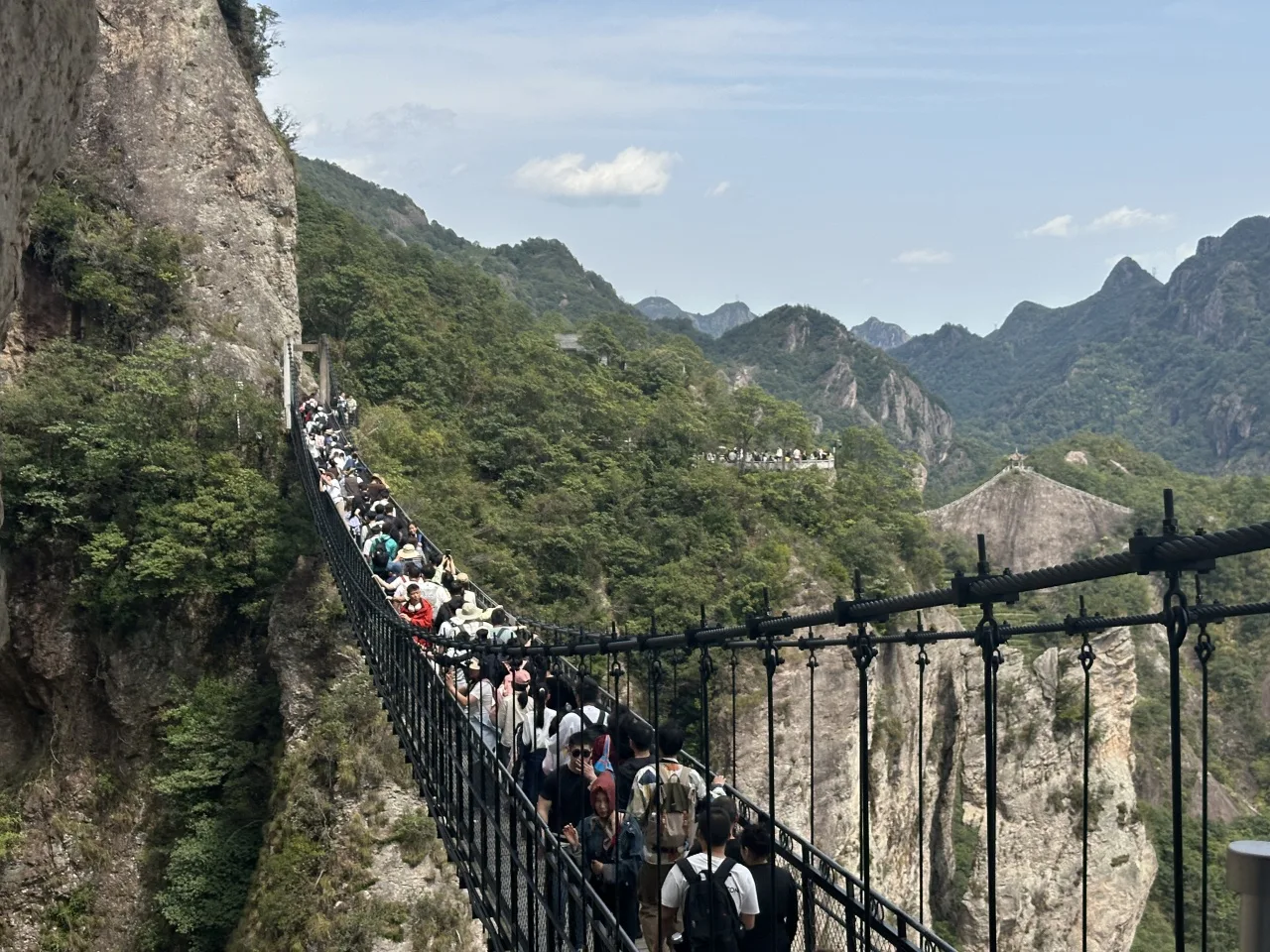 上午9时许,雁荡山景区已是人头攒动。来自上海的陈女士带着读小学五年级的儿子,凭学生证免费进入灵峰景区,随行的丈夫也享受了五折优惠。“一家三口门票省了几百元,太值了!”景区内,龙眼祈福地排起长队,网红咖啡店座无虚席;越剧折子戏婉转悠扬,国潮NPC与游客互动频频;世界地质公园研学之旅、非遗体验等特色课程,吸引众多青少年参与。假日首日,雁荡山共接待游客5.25万人次,同比增长24.11%;营业收入118.78万元,同比增长16.43%。