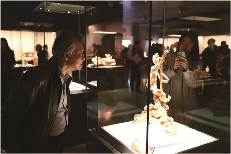 温州网讯 近日,大国工匠系列展览《薪火同辉——师徒三代木雕的传承与新声》在温州博物馆开幕。展览汇聚了虞明华、虞金顺、虞定良、吴尧辉、牟湘波三代五位木雕大师的57件精品力作,呈现乐清黄杨木雕的传承脉络与创新活力。