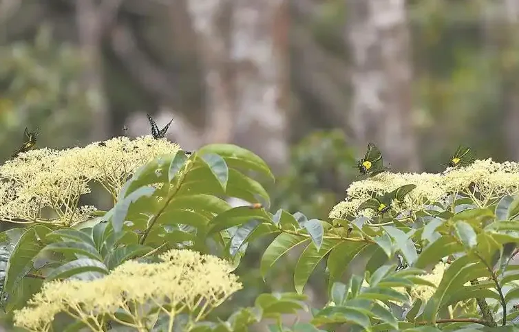 金斑喙凤蝶被誉为“蝶中皇后”,为世界八大名贵蝴蝶之首。泉州市戴云山保护区地处戴云山脉主体德化县境内,区内生态保护良好,分布有木莲、深山含笑等金斑喙凤蝶赖以生存的寄主植物。
