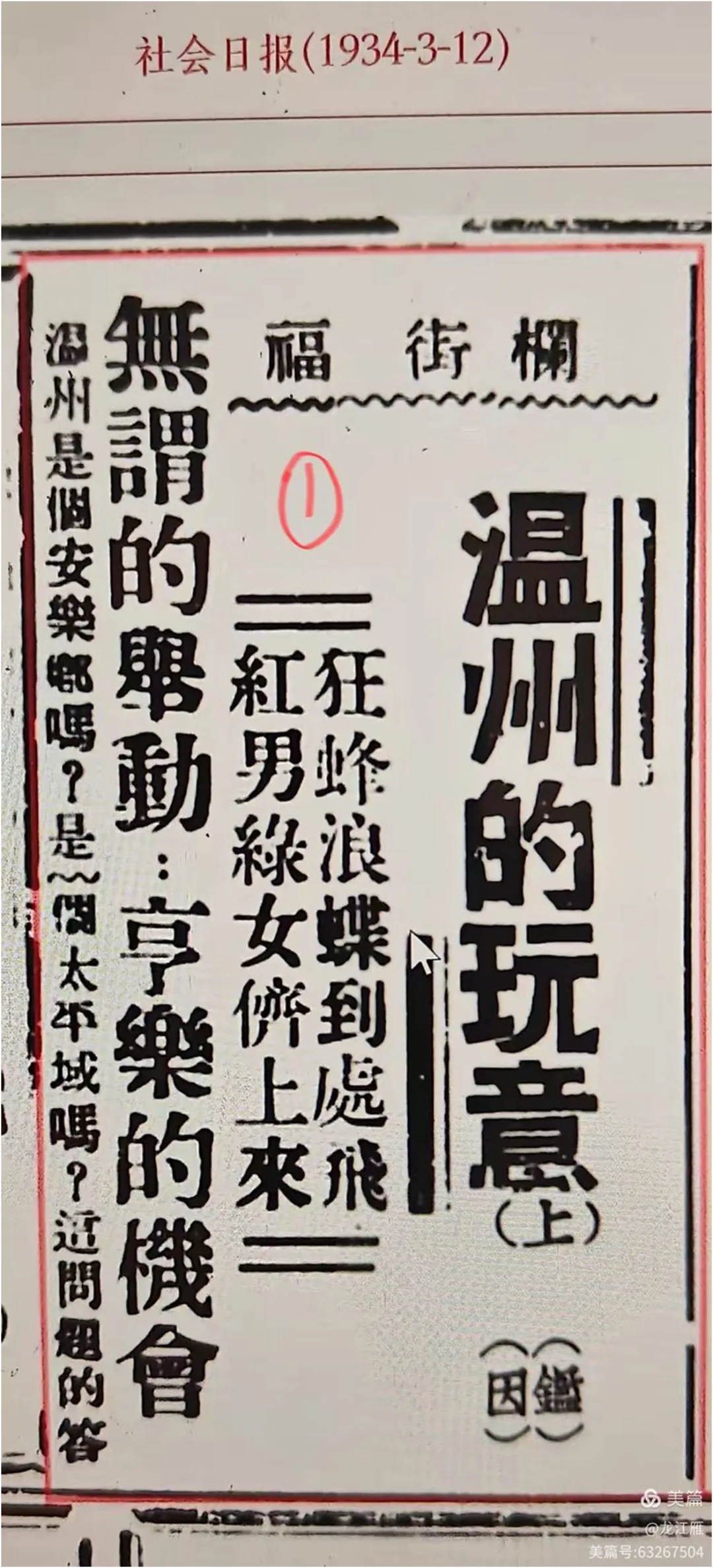 民国《社会日报》1934年3月12日与13日版面里,刊登有“欄街福”一文。原文分为九片段散登在作者笔名鑑因,今选刊头、尾片段(有删节)。
