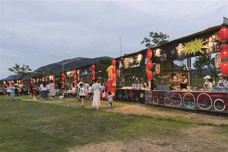 即便没有大型音乐活动,楠溪江滩地音乐公园也常常充满人气。一到晴好周末,两大草坪基本上会被帐篷、房车占据。除了永嘉本地居民,来自温州其他县(市、区)的游客或携家带口或与亲朋好友结伴而来,在这里露营休闲。人们看中的正是公园紧邻楠溪江的优势——空气清新,还能体验漂流等亲水项目。公园配套也在逐步完善。目前已有3家网红咖啡馆入驻,游客可以边喝咖啡边品尝美食,享受悠闲时光。