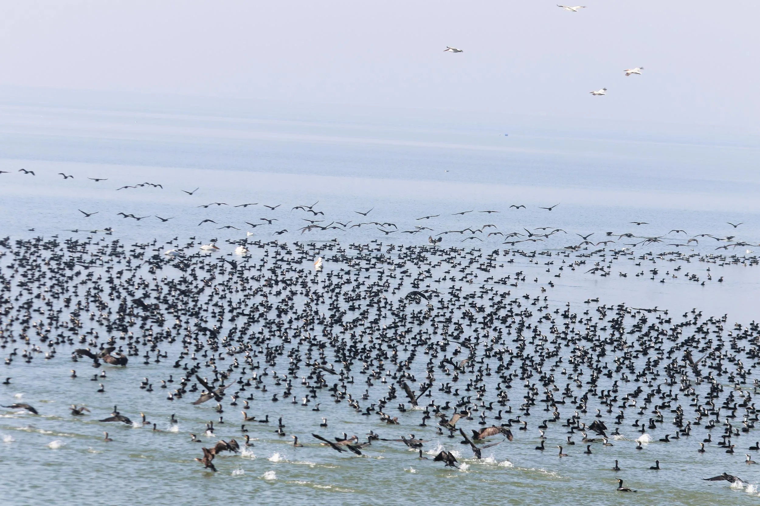 “这其实很符合它们的‘鸟设’。”王小宁告诉记者,她曾在关于卷羽鹈鹕欧洲种群的文献中看到过,这种鸟非常聪明,懂得“合作捕鱼”。卷羽鹈鹕体型巨大,擅长在水面上游动,把鱼群驱赶到一处;而鸬鹚则是潜水高手。两者配合,鹈鹕在水面“赶鱼”,鸬鹚在水下“围堵”,最后大家“开饭”。这种既合作又竞争的关系,是大自然中非常高级的生存智慧。