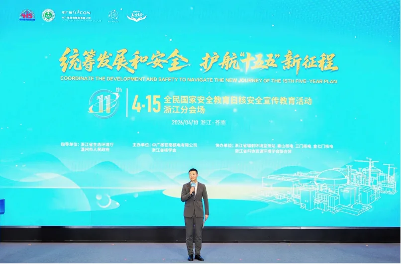 在第11个“4·15”全民国家安全教育日来临之际,2026年核安全宣传教育浙江分会场活动在中广核浙江三澳核电基地举办。本次活动由浙江省生态环境厅、温州市人民政府指导,中广核苍南核电有限公司、浙江省核学会联合主办,旨在通过多元形式深化全社会对核安全的认知与理解,凝聚守护核安全的广泛共识。省生态环境厅党组成员、副厅长周树勋;温州市人民政府党组成员、副市长崔波;中广核苍南核电有限公司党委书记、董事长杜延辉出席活动。