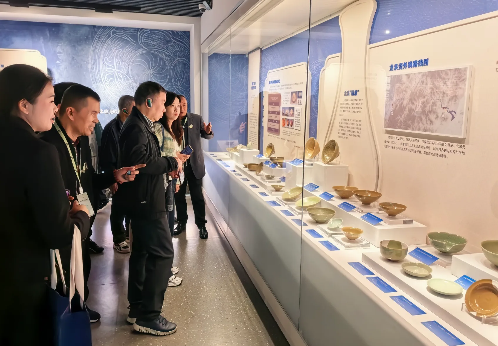 在采用气膜结构打造的朔门古港遗址展示馆,记者看到,巨型遗址沙盘全景再现古港格局,宋元码头、沉船遗迹、古栈道与瓷片堆积层静静铺展,借助AR互动、光影演绎等现代科技,展馆生动还原“舟楫云集、帆樯林立”的古港盛景。一旁的2号北宋沉船模拟展示同样令人惊叹——古船残长16.7米,10个水密隔舱清晰可辨,船板上密布的海蛆噬痕无声诉说着当年远渡重洋、破浪前行的航海传奇。28米长的元代龙泉窑瓷片堆积带,则直观印证了瓯江作为宋元国际黄金水道的繁忙与兴盛。