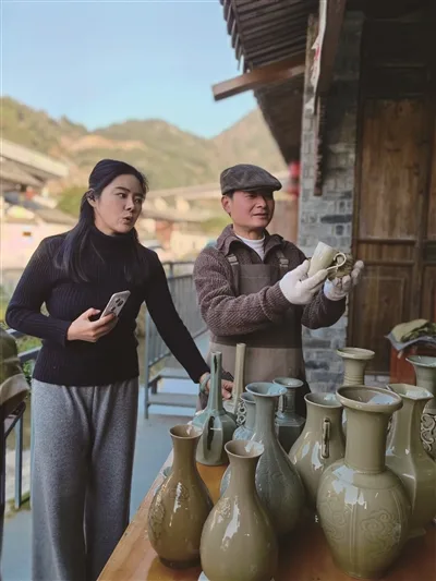 他目前主推茶具、餐具这类平价实用的东西,让非遗不再高冷,文创伴手礼日益普及。对于未来,李铭琦有自己的平衡之道。在艺术和市场、技艺与营销之间寻找融合。如今,他和妻子分工明确,妻子负责瓯塑与雕刻方面,他则想着把瓯塑和瓯窑结合起来,创作高端作品。