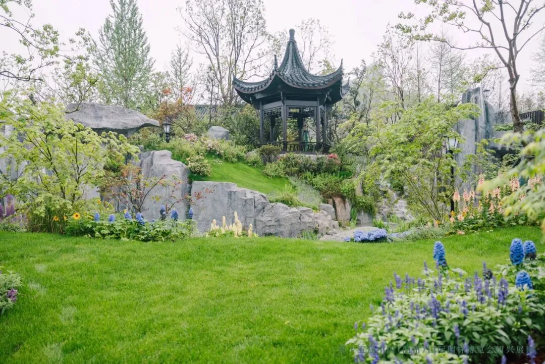 园中还有花,有戏,有诗。兰花是绍兴的市花,幽香清雅,不争不抢,却让人无法忽视它的存在。越剧是绍兴的声音,软糯糯、清亮亮,像春天的风拂过水面。草坪边的乌篷船花境,船身缀满花草,仿佛刚从鲁迅笔下的社戏中划来。戏台虽小,却能唱尽人间悲欢。你或许听不清每一句词,但那个调子一响起来,江南的味道就满了。