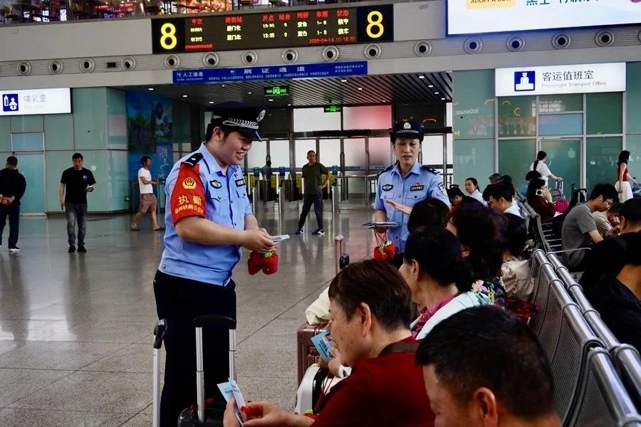 福州铁路公安处福州站派出所联合省公安厅、省反邪教协会、福州市公安局、福州车站等单位,在福州火车站向往来旅客讲解铁路出行安全、反邪教、防范电信网络诈骗、个人信息保护等知识,解答旅客疑问,帮助大家增强国家安全意识,提升防范化解风险能力。福州铁路公安处福州站派出所 供图