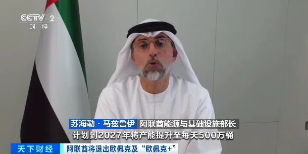阿联酋能源与基础设施部长 苏海勒·马兹鲁伊:有投资者已经在阿联酋进行投资,正在帮助我们提升产能,我们本身也有明确的目标,计划到2027年将产能提升至每天500万桶。这并不是什么新消息,而是我们多年来一直在反复强调的方向。