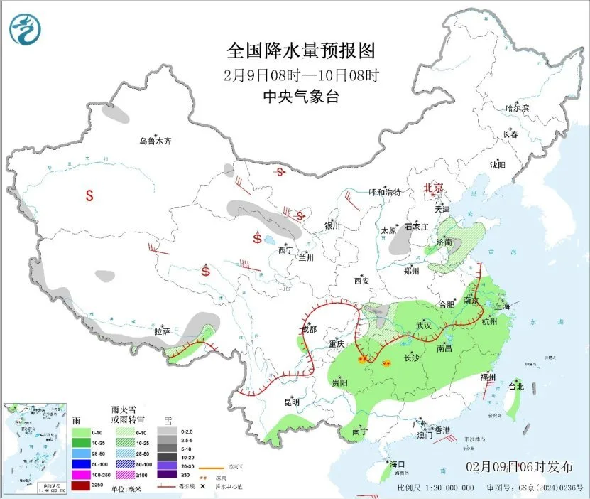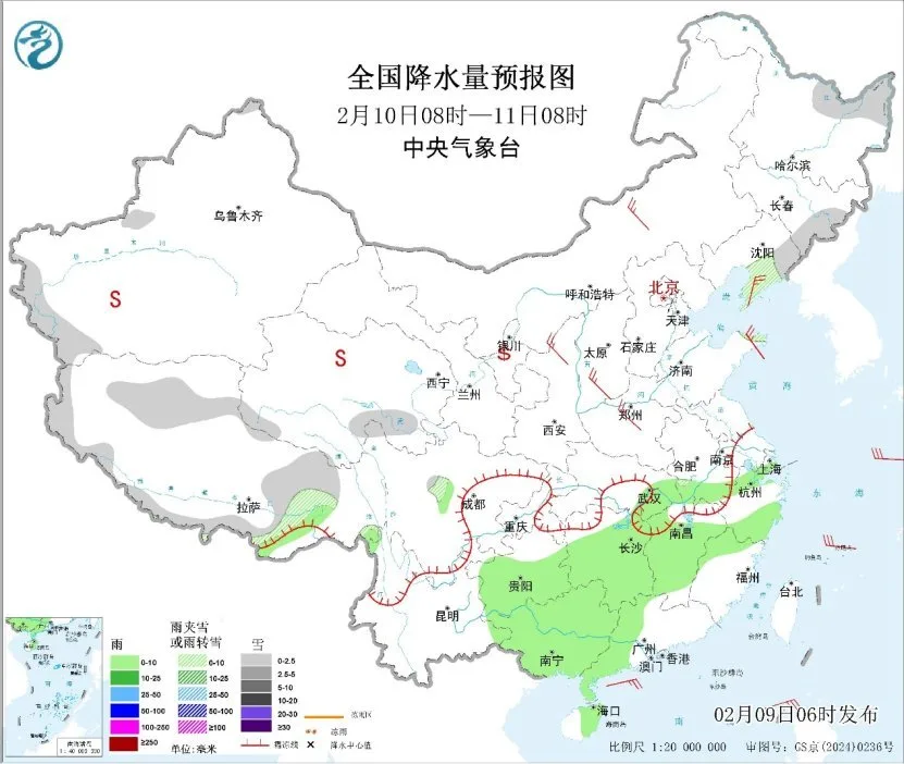 此外,昨日,新疆北部、西藏东部、四川西北部、湖北西部等地部分地区出现小到中雪或雨夹雪天气;湖南西部、贵州南部、云南东部、广西等地部分地区出现小到中雨。预计今明两天,影响我国的雨雪天气势力较弱,东北地区东部、新疆北部和西部、西藏、青海南部等地部分地有小雪或雨夹雪;贵州、广西、广东西部、湖南、湖北、江西、安徽南部、浙江、江苏南部、福建北部、等地有小雨,湖北西部、湖南西北部等地有雪或雨夹雪。
