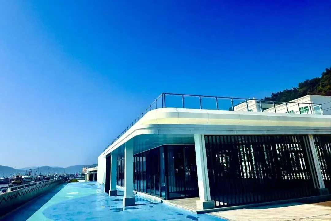 该项目同步实施近3000平方米生态绿化带与1.59公里滨海绿道,设置观海平台、休憩驿站等景观节点,将硬质堤岸转化为“可游可赏可憩”的生态廊道。空间布局上,海塘内侧设置水产与体育用品商店、露天茶吧,外立面则打造体育文化展示墙,并配套建设快艇码头等设施,进一步丰富滨海休闲体验,形成可漫步、可游览、可休憩的开放空间。