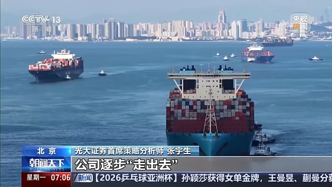 光大证券首席策略分析师 张宇生:这些企业从单纯出口去卖商品,逐步转向产业链迈向全球。公司逐步“走出去”,在海外建立生产基地,更深入地进入到全球供应链。