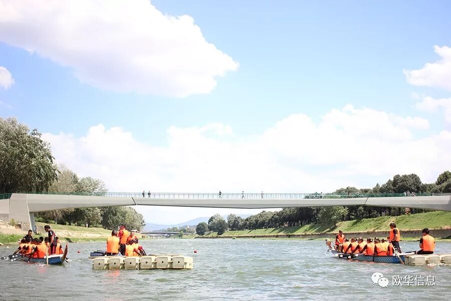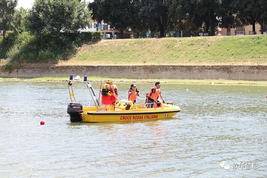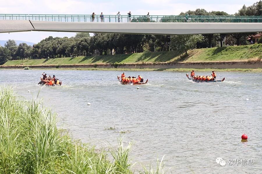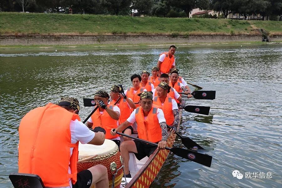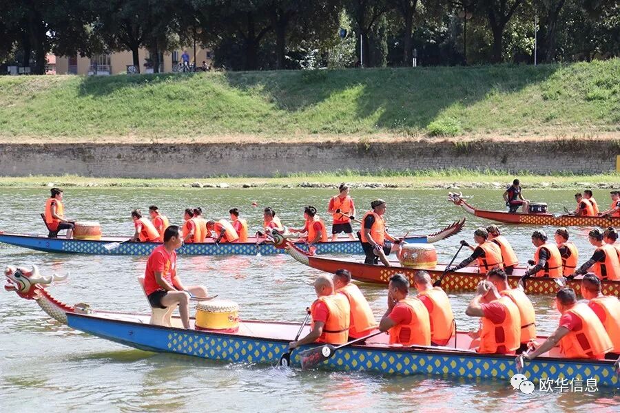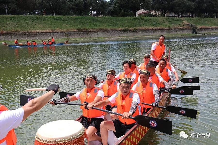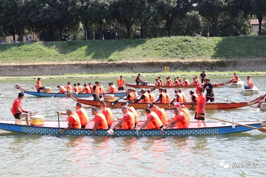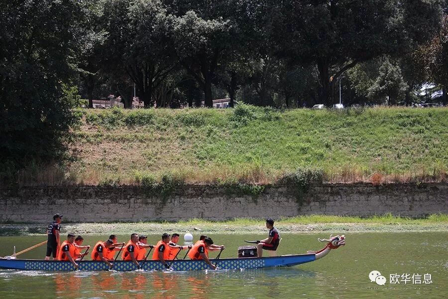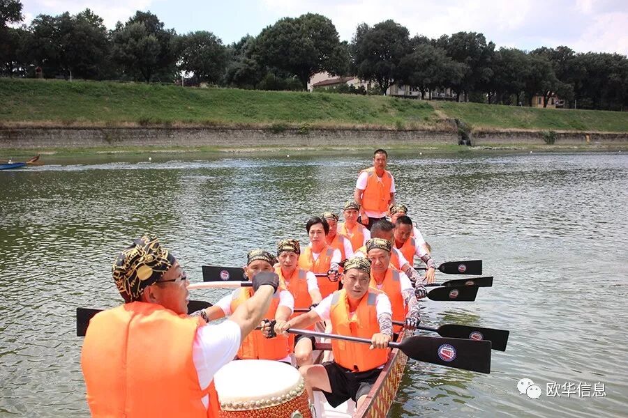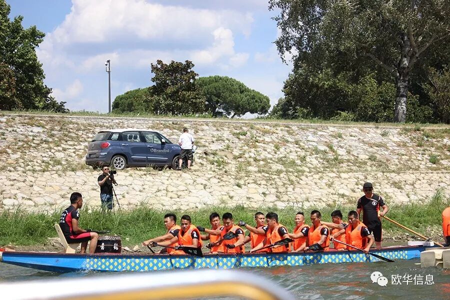 意大利《华人街》讯:普拉托记者(一策)7月11日下午二时,一场别开生面的富有民族特色的龙舟比赛在意大利佛罗伦萨LE CASCINE举行500米预赛,赛场上悬挂着醒目的标语,插着鲜艳的彩旗,各队队长抓阄后依次上船,随着一声号令,各队龙舟就像那离弦的箭一般,“加油、加油”两岸呐喊声此起彼伏,连绵不断,龙舟上的鼓手坐在龙头有节奏的打着鼓,各参赛队员齐心协力,奋勇拼搏。在啦啦队的助威下,划船手们力气大增,每一只龙舟的速度更快了,锣鼓声、欢呼声、声声震耳,谱成了一曲动人的交响乐。