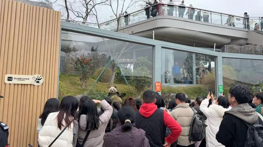熙熙攘攘的人群中,记者站得笔直,心里惦记着玻璃窗内那些毛茸茸的身影,暗叹人与人之间的悲喜并不相通:她离熊猫最“远”的距离,竟是隔着一道检票闸机。记者此时的身份也不是记录者,而是身穿志愿者马甲、站在闸机旁维持秩序的“临时工作人员”。