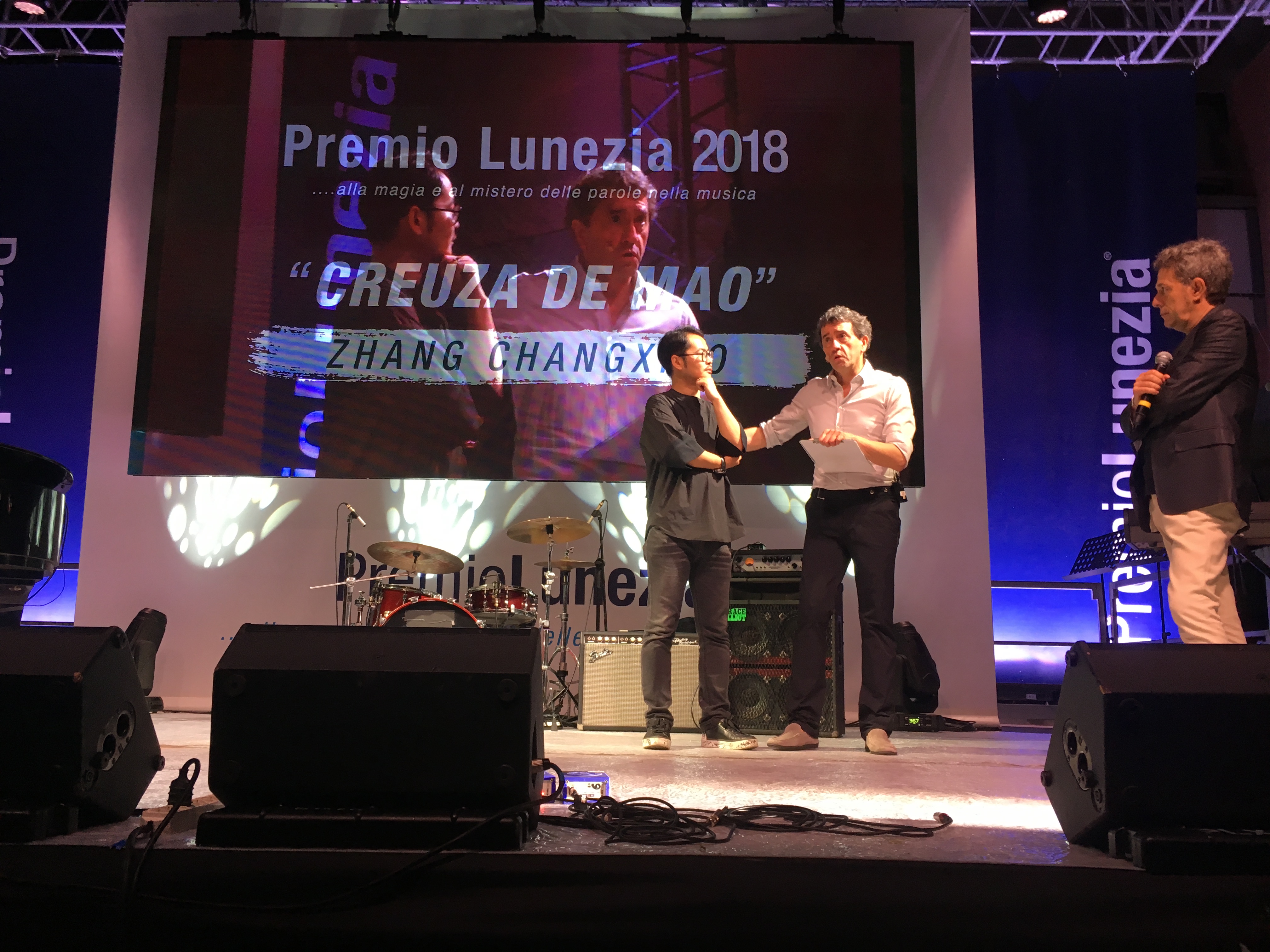 意大利《华人街》网讯:昨日,第二十二届意大利鲁尼兹亚流行音乐大奖颁奖典礼于奥拉市市政厅广场举办,鲁尼兹亚组委会主席Stefano De Martino宣布,旅意华人学者、“当代音乐马可波罗”张长晓荣获本届组委会“评审团银月亮音乐贡献奖”,同时他也是首位获得此殊荣的中国学者,历届获奖者有罗拉·普西尼(Laura Pausini )、瓦斯科·罗西(Vasco Rossi)、查尔斯·阿兹纳弗(Charles Aznavour)、安德烈·波切利(Andrea Bocelli)等人。