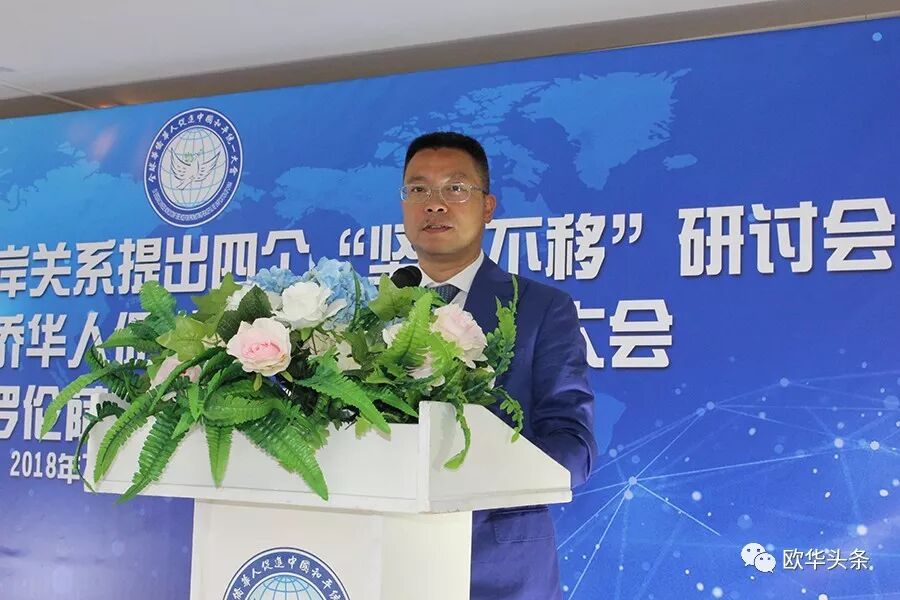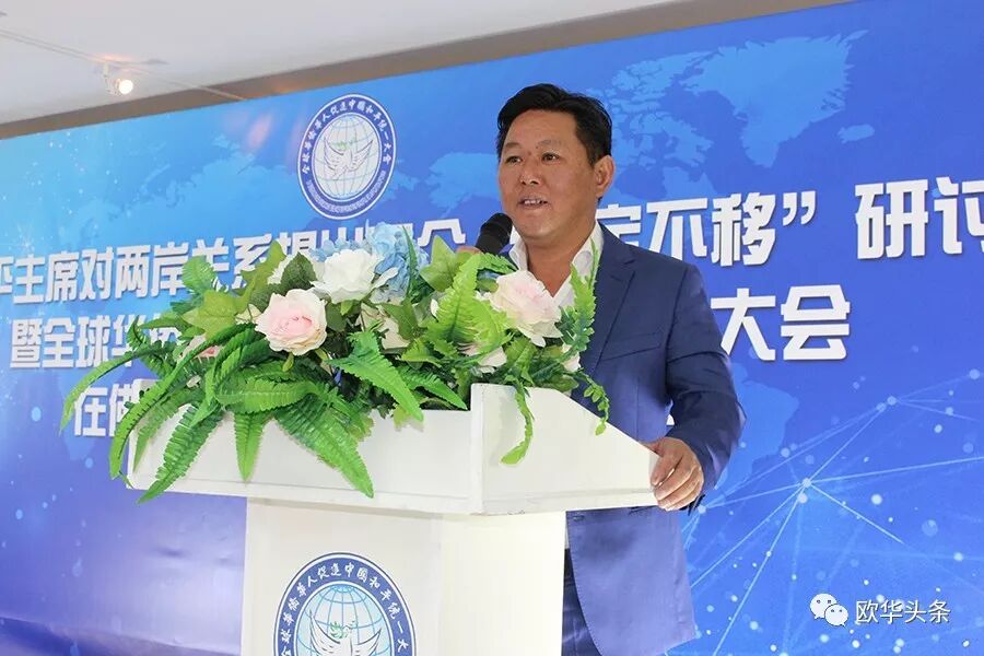 ▲意大利中国和平统一促进会第一常务会长胡建兵发表讲话