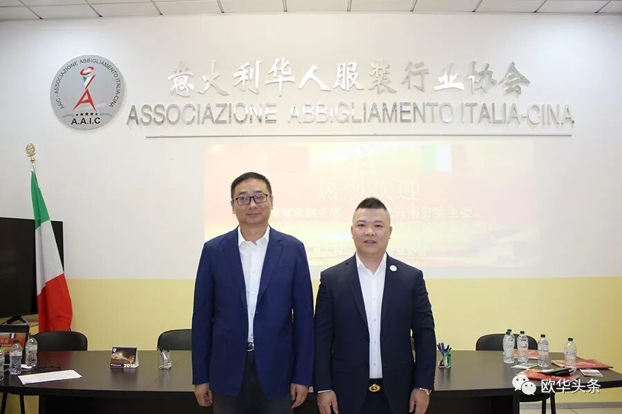 ▲李嵘主席与李小锋会长在意大利华人服装行业协会办公室合影