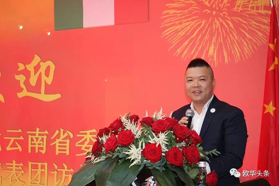 ▲首先,意大利华人服装行业协会会长李小锋会长致欢迎词,表示了对李嵘主席携代表团到访的热烈欢迎,也希望通过此次来访与致公党云南省委的多名领导多沟通、多交流、相互学习、相互借鉴,促进共同发展。