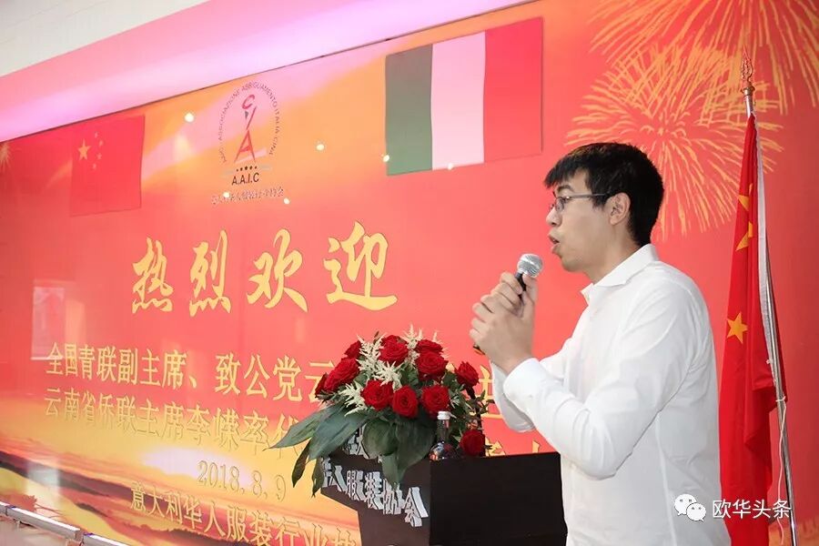 随后李嵘主席上台发言,表达了对到场嘉宾的感谢,亲切叙述他与意大利的情缘、对意大利的印象。他表示,这次来访普拉托,对华侨华人从事服装行业有了新的认识,也对中意的商业往来有了更多信心,希望在意的华侨华人能创造更美好的未来,表达了诚挚的祝愿。