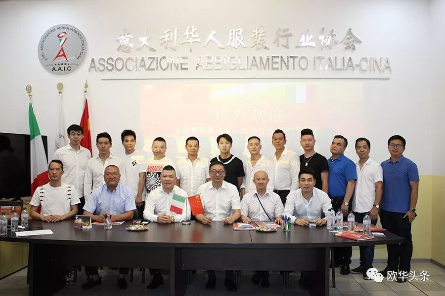 ▲意大利华人服装行业协会成员与代表团一行及王辅国总领事合影