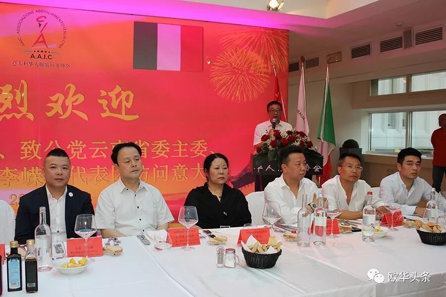 随后,意大利华人服装行业协会在普拉托市Wallart酒店举行隆重的欢迎晚宴。中国驻佛罗伦萨总领馆王辅国总领事及各社团代表、华文媒体上百人出席。