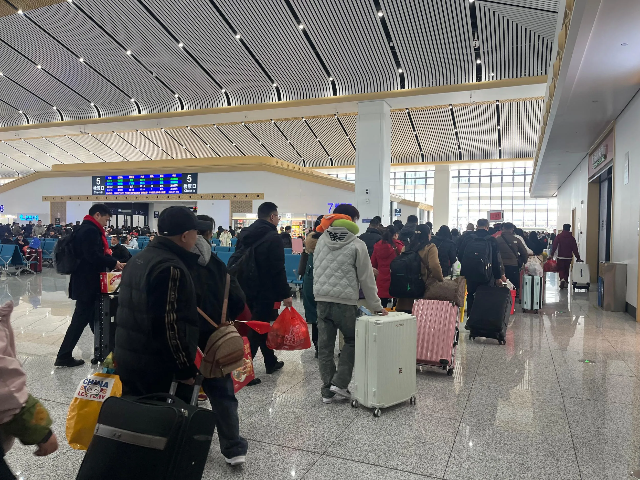 温州网讯 “手里攥着直达老家的高铁票,怀里揣着温州特产大礼包,这趟回家路,太省心、太暖心了!”2月9日上午9点30分,铁路温州南站西站房候车室里,拎着行囊的宜宾籍务工者林师傅,一边展示着手中的车票,一边笑着对记者说,眼角眉梢满是藏不住的喜悦。当天,300余名和林师傅一样在温打拼的宜宾老乡,带着车站的温情与温州的牵挂,乘坐G2302次列车返乡,奔赴与家人的团圆之约。