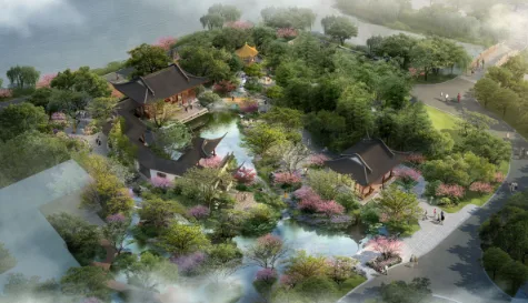 浙山浙水驿路口望湖州园效果图