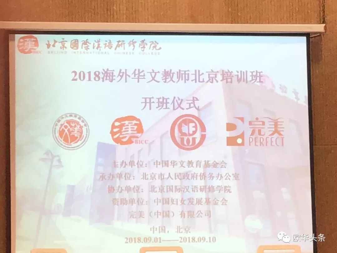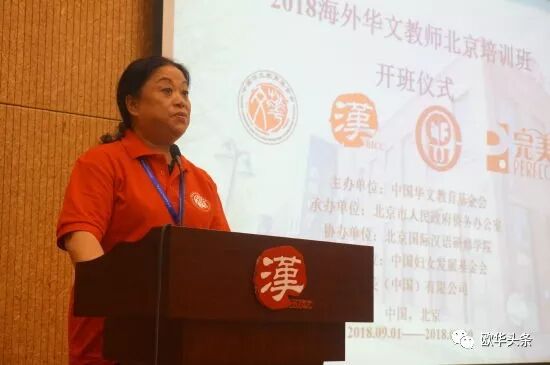 意大利《华人街》讯(记者一策):2018年9月2日上午,由中国华文教育基金会主办、北京市人民政府侨务办公室承办、北京国际汉语研修学院协办、中国妇女发展基金会和完美(中国)有限公司资助的“2018海外华文教师北京培训班”举行开班仪式。中国华文教育基金会项目二部主任李晓梅,北京市人民政府侨务办公室副主任史立臣、文宣处处长李晓菲,北京国际汉语研修学院副院长刘彦、顾问刘雁安,以及来自来自意大利,法国,匈牙利,加拿大,英国,泰国,印尼,荷兰,巴拿马,里斯本,厄瓜多尔等12个国家和地区的19名华文教师出席了开班仪式。