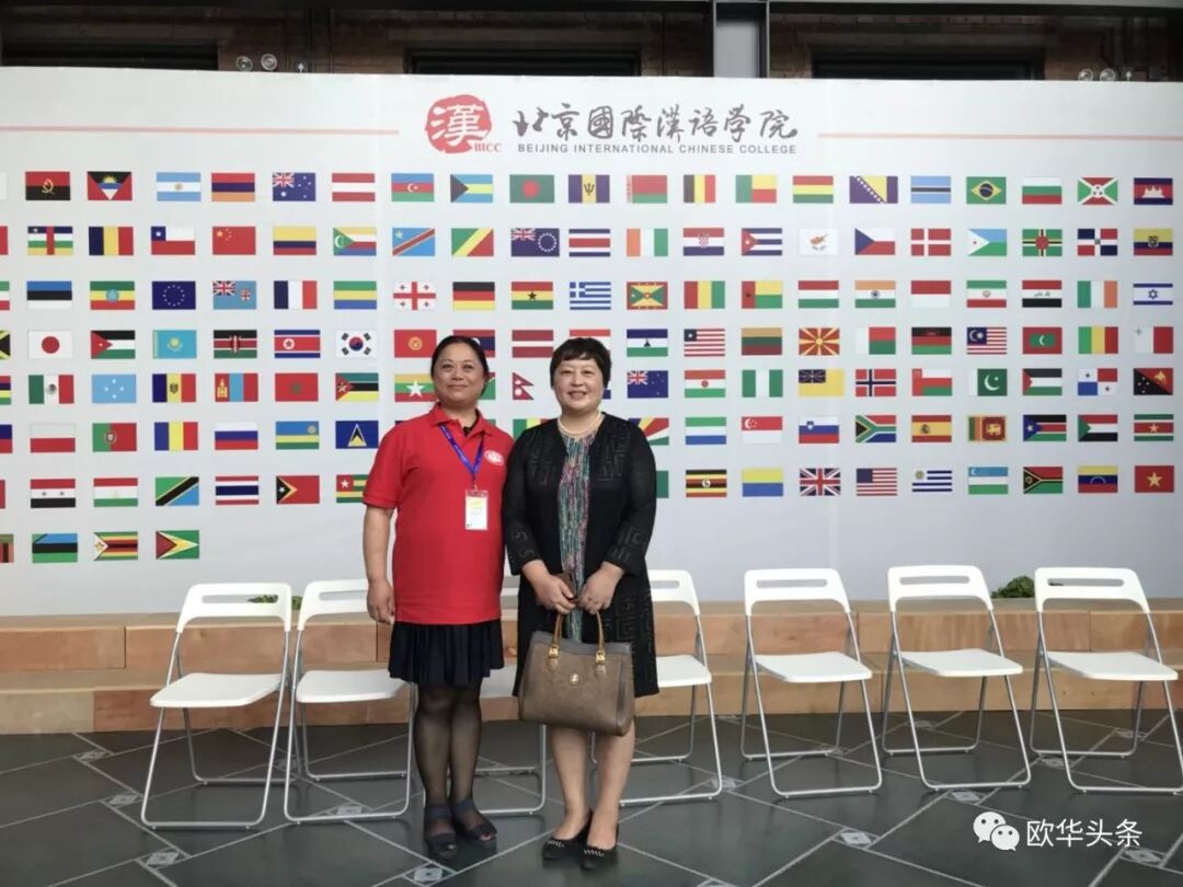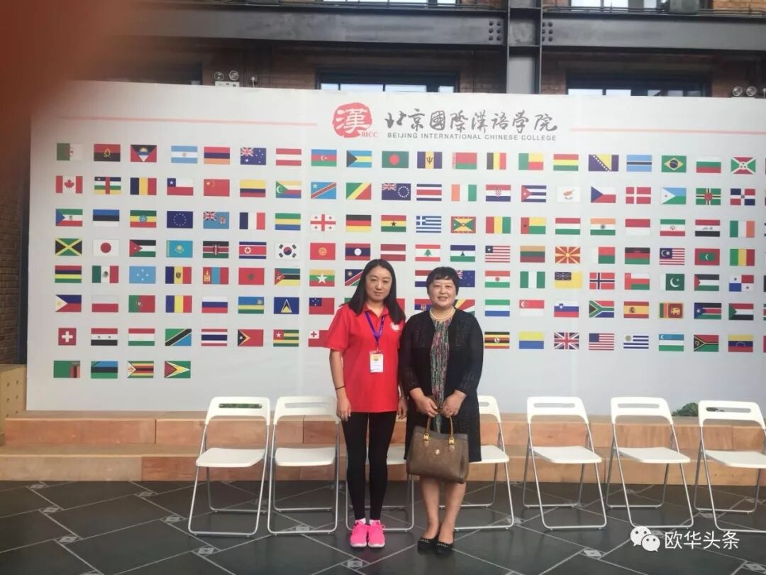 ▲意大利国际教育文化交流学院教师竺丁灯(左)与华文教育基金会李晓梅主任合影