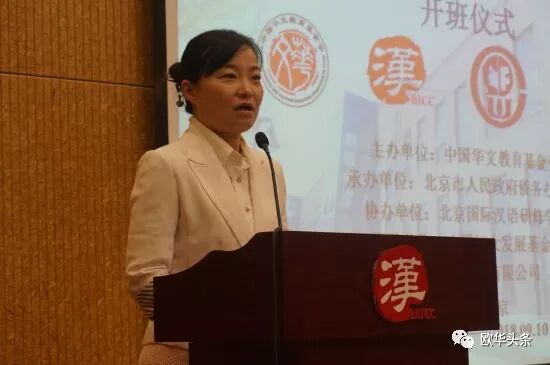 意大利国际教育文化交流学院刘姗校长代表全体学员上台发言,她感谢各方对海外华文教师提供这次难得的培训机会,此次培训不仅能让海外华文教师了解国内最前沿的教育教学理论,也会使大家的教育教学能力与水平得到提升,为海外华人华侨学子提供最优质的华文教育,这将是一个促进海外华文教师更加有效地学习和提升自己专业素质的途径和平台。