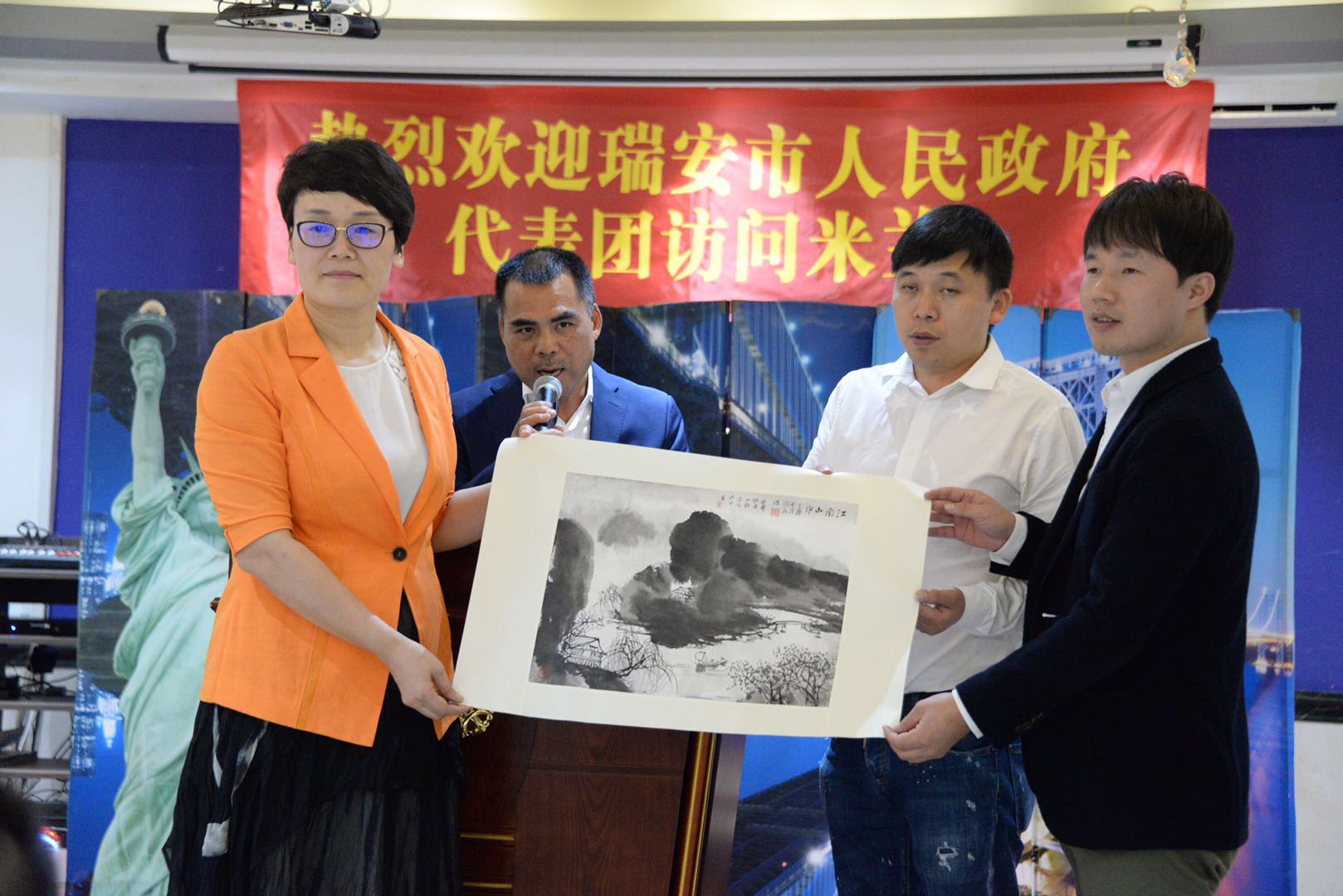 代表团团长、瑞安市委常委、统战部长郑海洁女士在致辞中希望瑞安籍海外乡亲发挥资金、技术、人才和人脉优势,积极参与祖(籍)国的建设发展,踊跃参与“一带一路”建设。充分发挥地缘、亲缘、业缘、文缘等各种优势,促进住在国与家乡在更多领域的交流合作,为繁荣家乡经济做出新贡献。