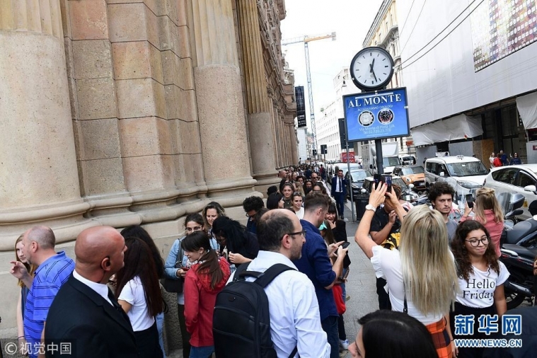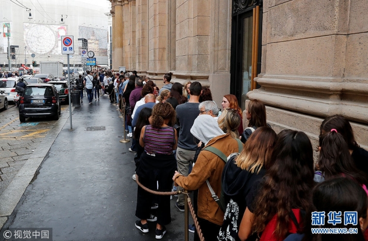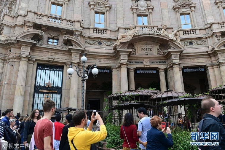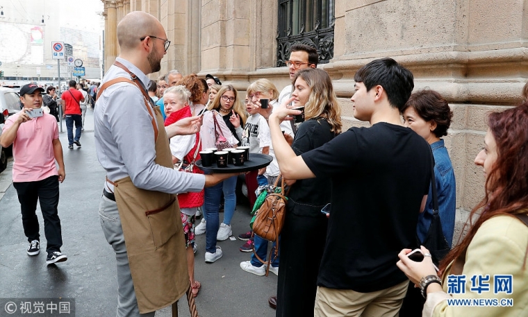 当地时间2018年9月7日,意大利米兰,美国咖啡巨头星巴克在意大利开了第一家分店,吸引了众多粉丝排队购买、自拍留念。(图片来源:视觉中国)