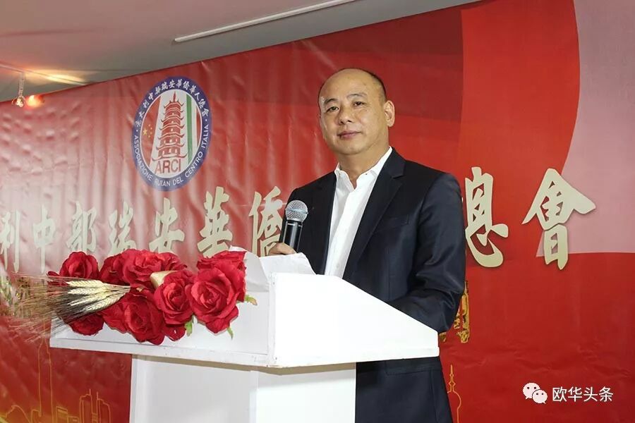 ▲意大利中部瑞安华侨华人总会丁金荣会长首先感谢代表团一行不辞劳苦、关心当地华人、了解侨情。
