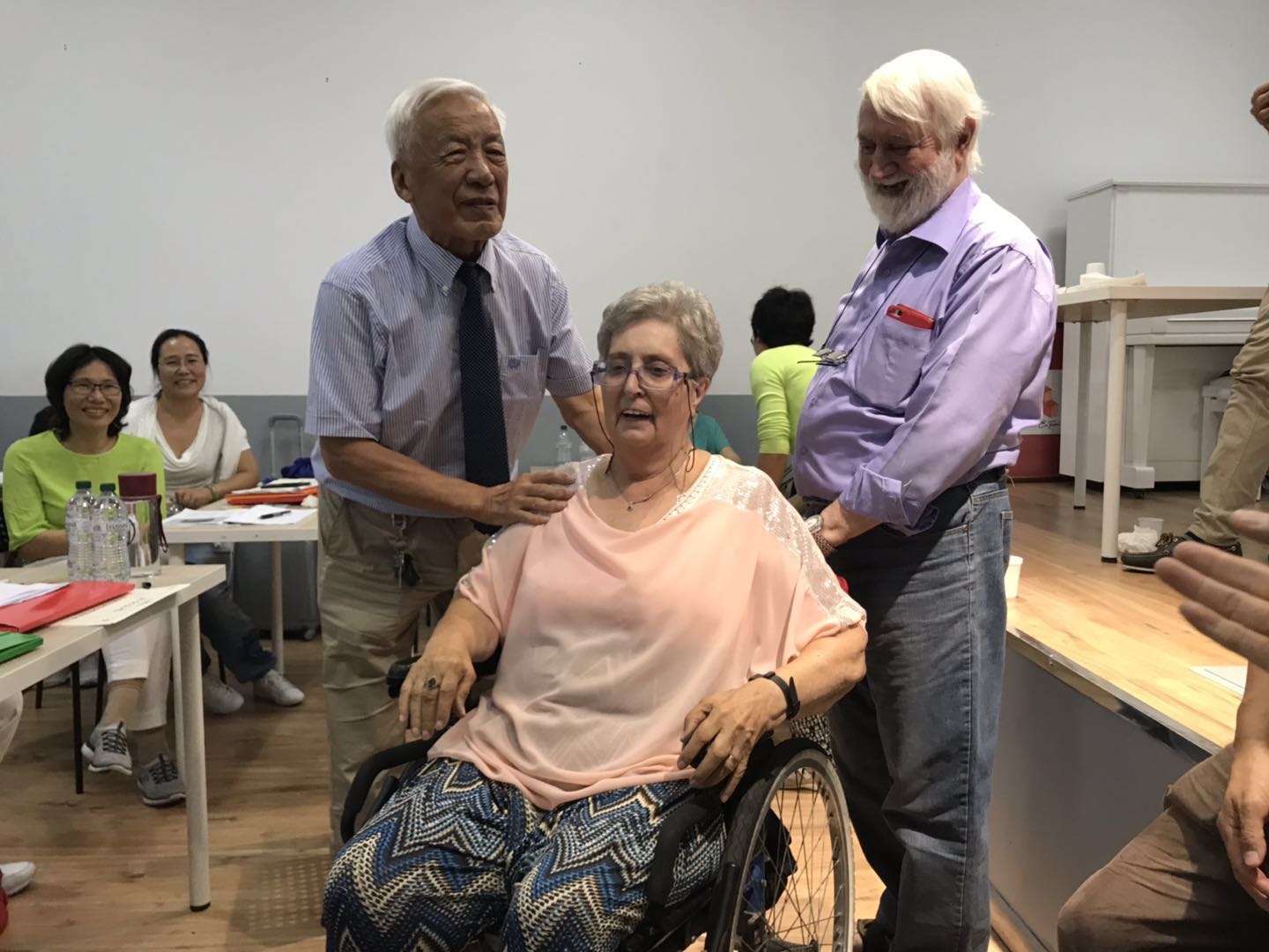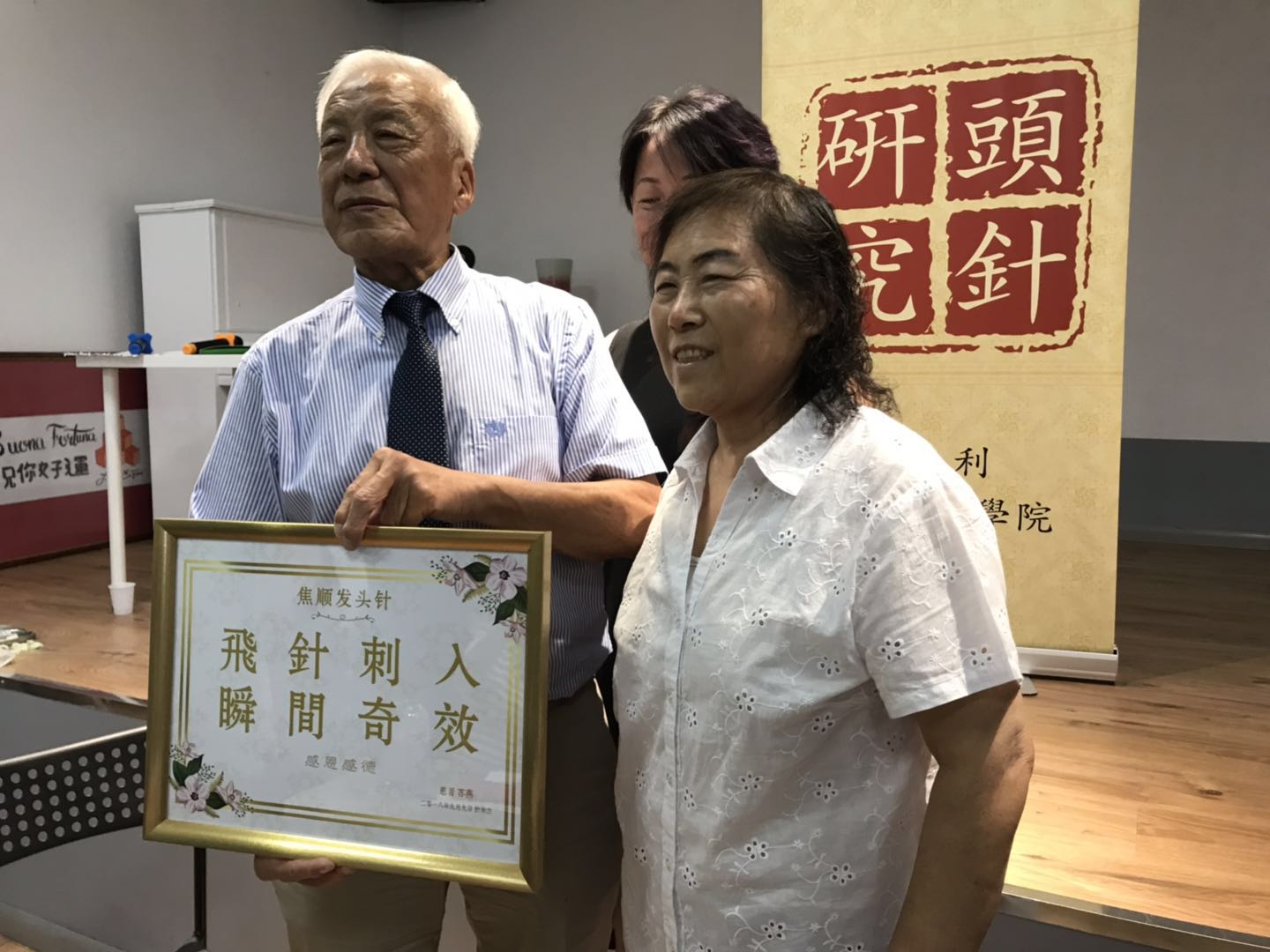此前,焦顺发教授已经先后完成在英国、比利时、德国、荷兰的讲学,意大利米兰是本次欧洲讲学的最后一站。在对患者现场进行“头针”治疗环节中,除了中医从业人员以身试效,还有许多慕名而来的华裔患者及外国患者恳请焦教授进行诊治。经过“望、闻、问、切”,焦教授依症下针,患者当场皆有好转,无不感叹中医针灸文化的博大精深,纷纷向焦顺发教授表示感谢,一位坐在轮椅上多年的意大利老太太发现仅三针就缓解了自己肢体上的疼痛感后,更是情不自禁地亲吻焦老的脸颊。四位意大利医生看到了头针的神奇,纷纷表示希望焦老能下次来意大利能为意大利医生做一次讲座。焦老教授在感受到海外中医工作者们的热情与米兰主办、协办方的细心组织后,一度哽咽,向大家讲述了数年前的行医不易,希望大家不忘初心,克服困难,坚持钻研实干,弘扬中医文化。