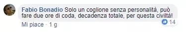 ——“只有那些没脑子的傻X才会去排两小时队,文化丧失,堕落!”