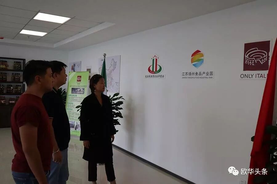 意大利《华人街》讯(记者一策):2018年9月10日,欧华信息网董事长徐策途经江苏扬州,拜访了“一带一路”中意经济文化合作中心,受到中国区总经理周劲草的热情接待,并在江苏扬州广陵经济开发区食品产业园副主任顾馨、意大利亚得里亚华商会会长助理宋铮鸣等的陪同下参观了产业园。