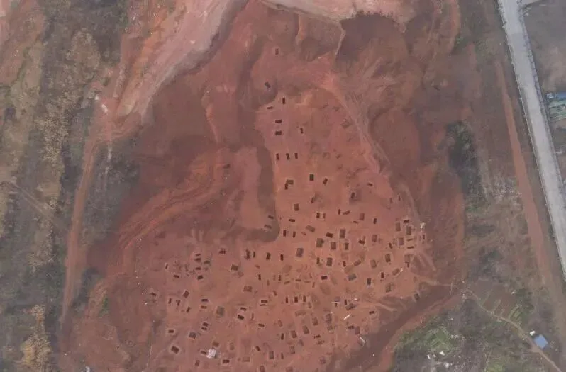 △望城坟山坡墓园考古航拍图