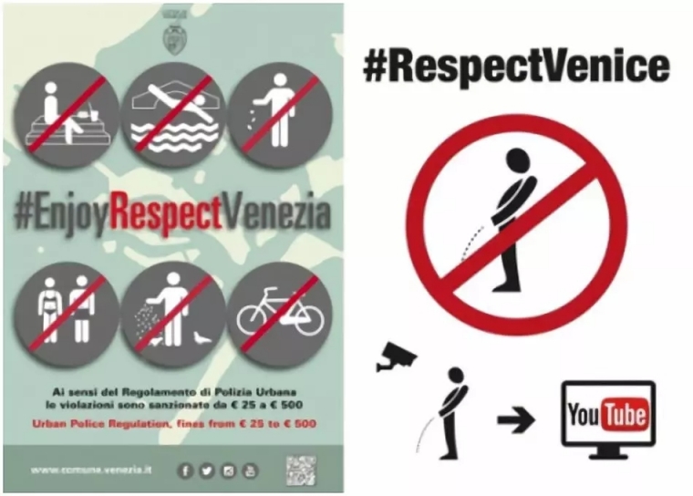 威尼斯市此前就已经明令禁止多种行为,比如席地而坐吃东西、跳进水里、随地大小便等。