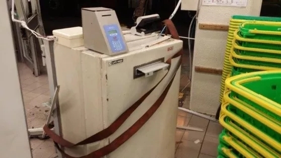 意大利今日网21日报道,前一天凌晨,罗马via di Decima大街的连锁超市Pam遭到一伙歹徒抢劫。5时左右,这伙歹徒开着一辆汽车和一辆带着特殊机械臂的货车(这种特殊机械臂俗称“攻城槌”或者“撞墙锤”),撞碎了超市的玻璃围墙后入室,企图用机械臂将超市内的一台保险柜强行拖走。