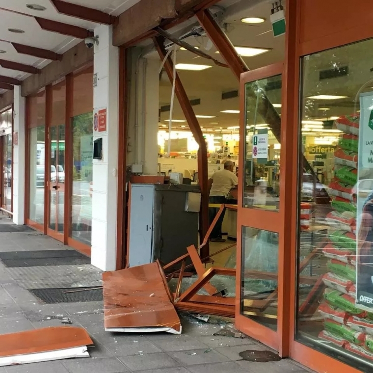 去年12月的一个深夜,卡塔尼亚省贾雷(Giarre)的一家超市“Famila di Giarre ”遭遇了挖掘机破坏。一伙歹徒从市中心一处工地上偷来一辆挖掘机,直接冲破了超市的金属卷帘门,企图偷盗超市里镶嵌在一堵墙上的保险柜。未料在强行破坏墙壁时,挖掘机发生了故障,这次抢劫行动从而拖延了几分钟。宪兵接到超市的入侵警报后赶来,这伙歹徒见势逃走,保险柜才未遭抢劫。