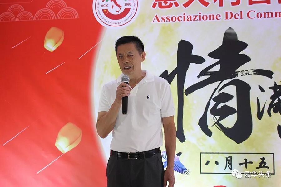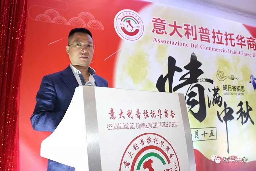 ▲普拉托华商会周荣景会长首先致中秋贺词,他向出席普拉托华商会举办的中秋节联欢晚宴的各位侨团代表、华商会各位同仁,在坐的每一位侨胞致以节日祝福:“中秋节快乐!”在中秋这个飘溢亲情的节日,弥漫团圆的时节,盼望团圆,追求团圆,享受团圆,是大家共同的心愿,在这个团圆的日子里,我们怀着明月寄相思的心情,为了情满中秋干杯!