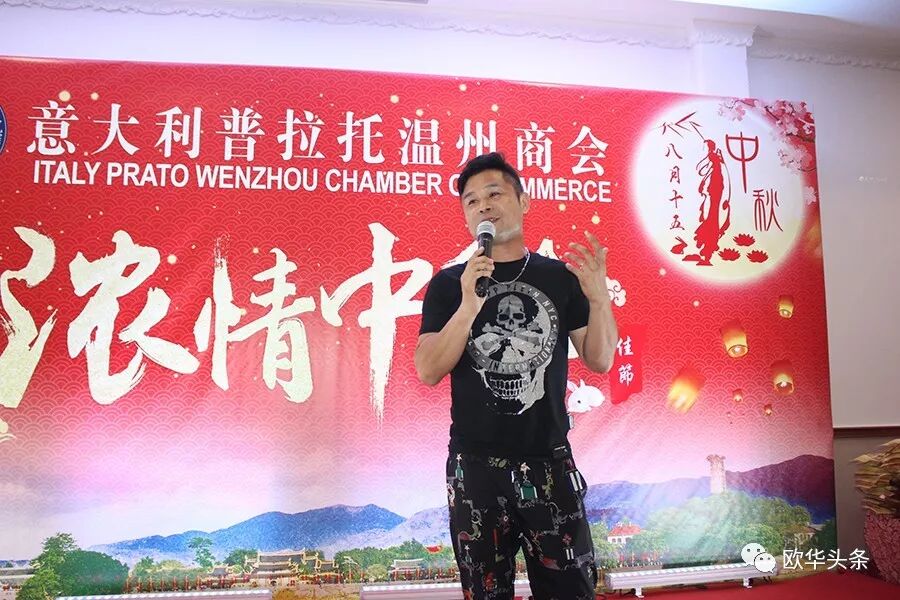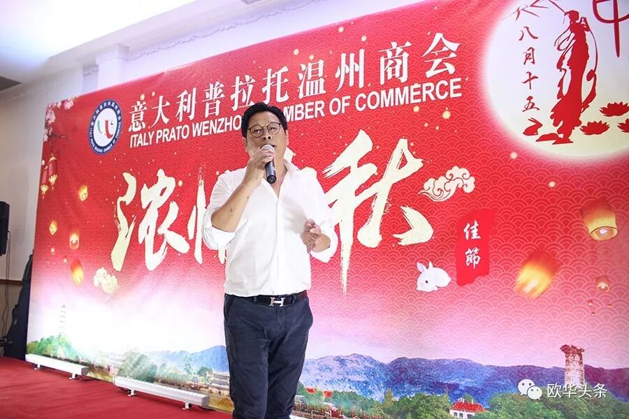 ▲普拉托温州商会秘书长金毓海主持当天的联欢晚宴,他感谢创会会长黄品亮无私的奉献,带领大家将商会越办越好,希望全体会员都能够齐心协力将商会当成自己的家,值此中秋佳节之际,金毓海秘书长还在现场例举了古今多位诗人、词人书写的有关月亮有关团圆的脍炙人口的诗句,祝愿大家度过一个难忘的中秋节,祝所有来宾阖家幸福,团圆美满!