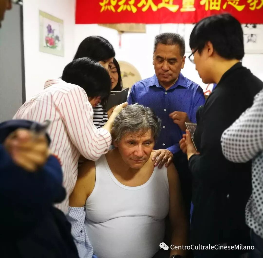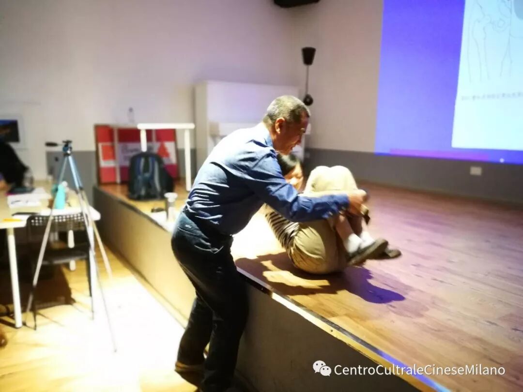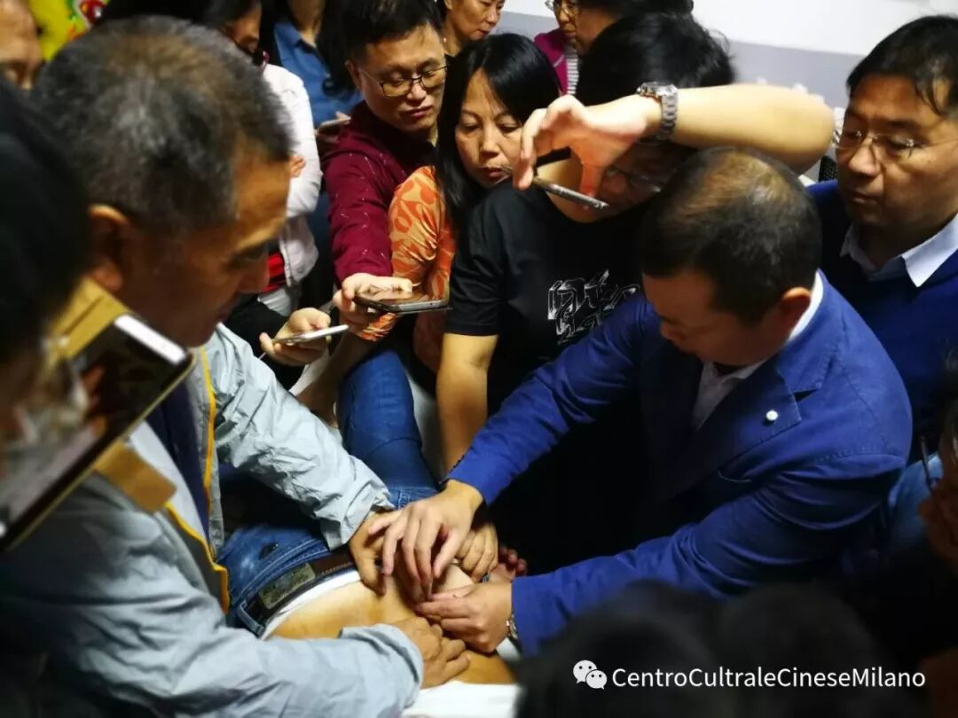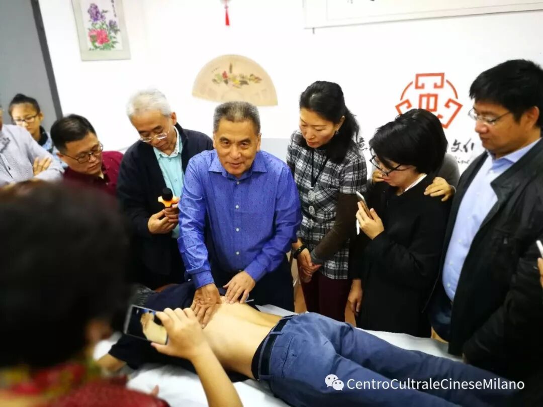 董教授在对国际患者的诊治过程中,更是手把手指导米兰当地的中医医师进行针灸,分析病因、触诊寻找张力点、传授铍针手法及下针位置,以期这些国际患者后续依旧能够接受相应治疗。
