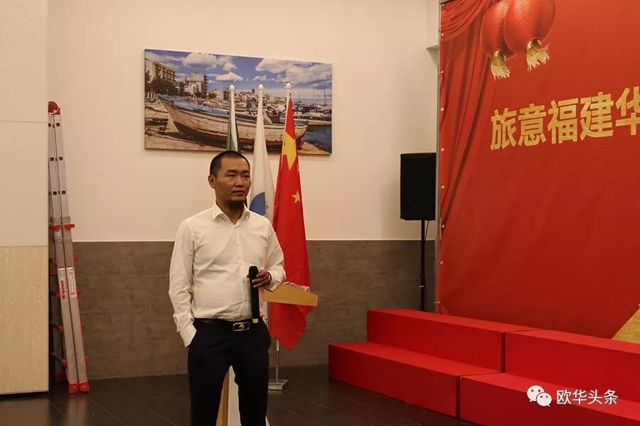 ▲旅意福建华侨华人同乡总会秘书长余协彬主持庆祝大会