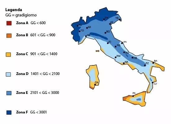 一场秋雨一场寒,随着天气逐渐变冷,不少人可能会问,意大利什么时候开始供暖?事实上,由于意大利地理构造不同,南北气候的差异,意大利各地供暖时间也不一样。根据意大利 10-1991法令规定,北方可以从10月15日开始供暖,而在南方地区,日期则定于11月15日。法律将意大利供暖区域划分为ABCDEF六个区域,气候带从最温暖的A到最冷的F,每个区域的供暖时间以及每天供暖时长也不相同。
