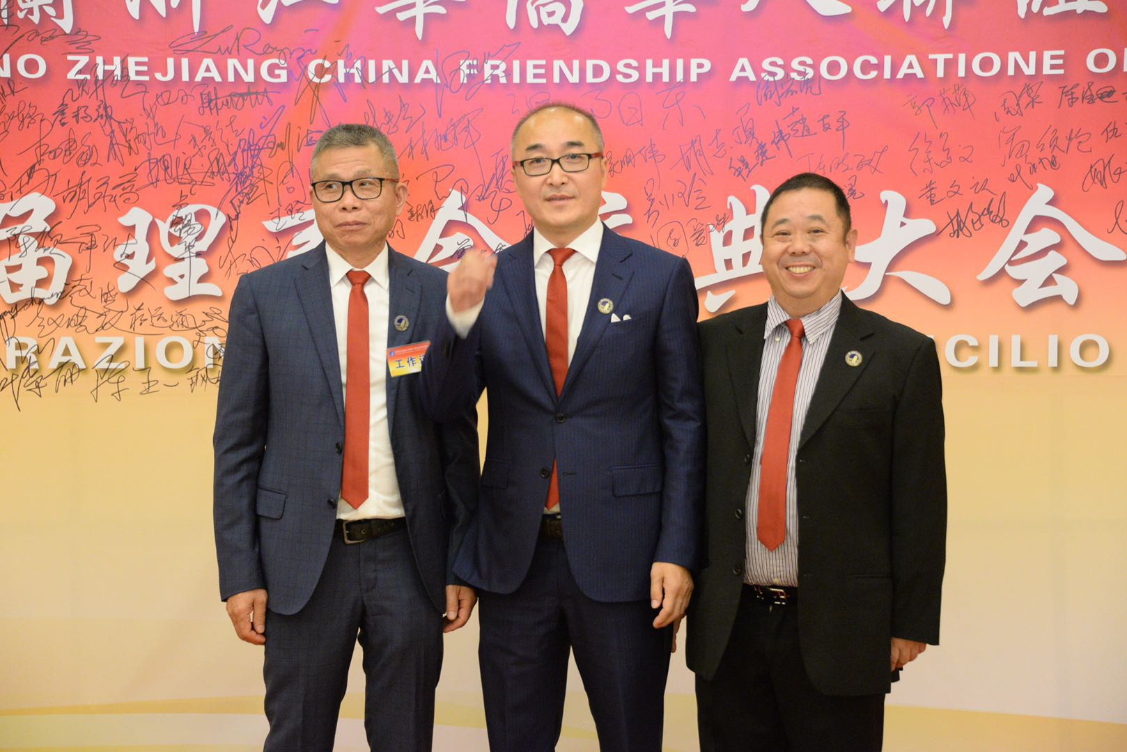 新任会长温阳东在就职报告中说到,金秋十月,花果飘香!在这丰收的季节里,我们欢聚一堂,共同庆祝米兰浙江华侨华人联谊会第六届理事会换届庆典大会,首先我代表浙江联谊会对莅临今晚庆典大会的各位领导,各位来宾表示热烈地欢迎,对一直以来支持和关心米兰浙江联谊会发展的各界朋友表示衷心地感谢!已经走过十七个春夏秋冬的米兰浙江联谊会是在胡守近等老一辈侨领的支持和帮助下,由吴昌文等一批知名侨领,在2001年11月共同创立,十七年来在吴昌文,胡小明,朱金亮等三任会长的带领下,在历届会员的共同努力下,浙江联谊会已经成长为具有一定知名度和影响力的爱国侨团。承蒙联谊会各位新老会员的信任和厚爱,我有幸被推选为米兰浙江联谊会第六届会长,我知道担任会长,这不仅仅是一份荣誉,更是一份沉甸甸的责任,我将努力学习前三任会长奋力拼搏,无私奉献的精神,秉承“爱国爱乡,服务侨胞”的创会宗旨,认真履行章程赋予会长的各项职责,尽我所能,不辜负大家对我的信任和期待,与联谊会的兄弟姐妹们一道,团结一致,与时俱进,充分发挥每位会员的优势,遵循“融入,发展,回馈”的理念,在不断融入的同时,积极地发展自己,更好地回馈社会,为中意两国人民的经贸往来,文化交流发挥更大的作用。我们相信,在米兰总领馆的正确指导下,在米兰侨界的大力支持下,米兰浙江联谊会一定能够“聚力同心,共赢未来”!谢谢大家!