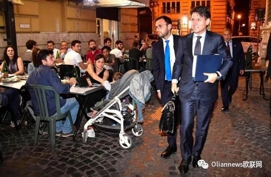 意大利总理孔特在警卫人员陪同下上街购买外卖。