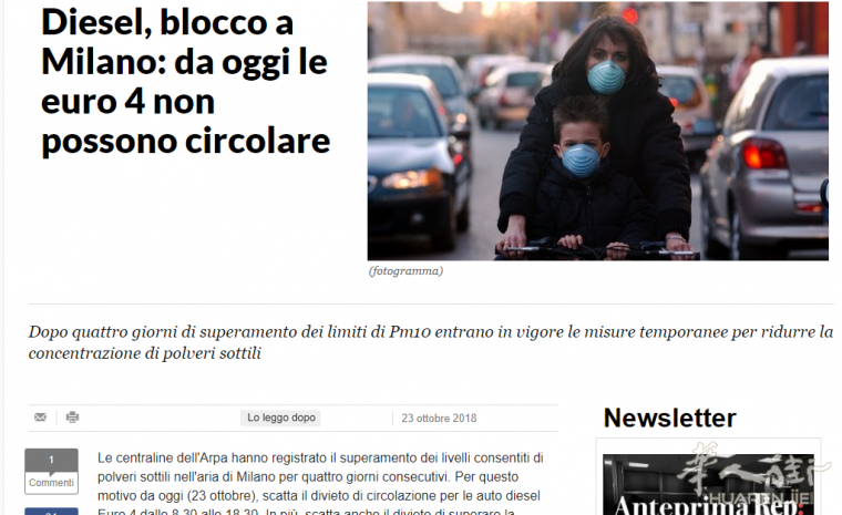 意大利华人街(微信订阅号:huarenjie0039)编译共和报网综合报道2018年10月23日米兰消息:因连续4天城市的空气里微颗粒P10超标,因此米兰等地临时采取禁止欧4柴油车通行,直到空气指标恢复正常为止。
