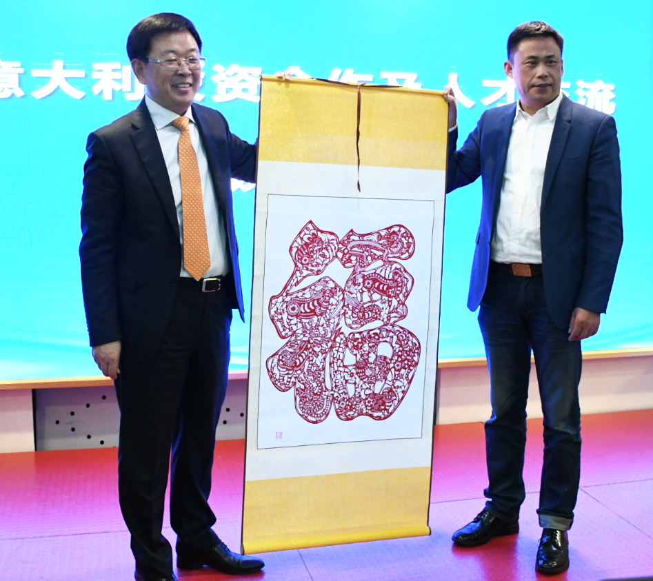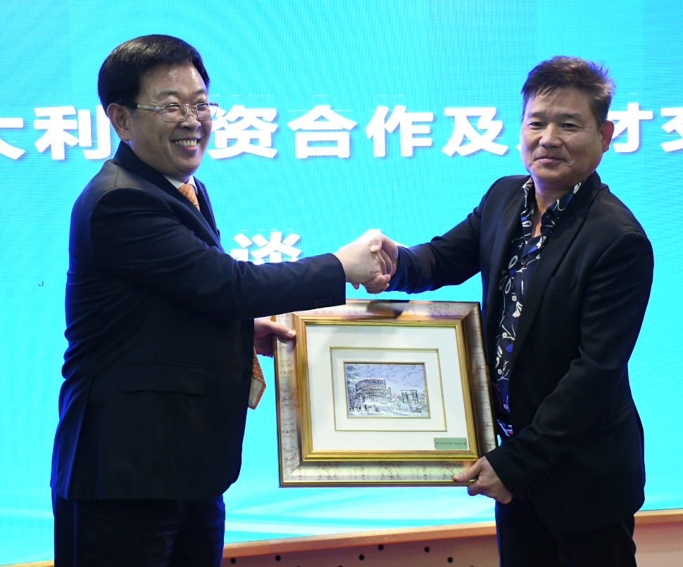 罗马华侨华人联合总会常务副会长吴祖生接受代表团赠送的纪念品