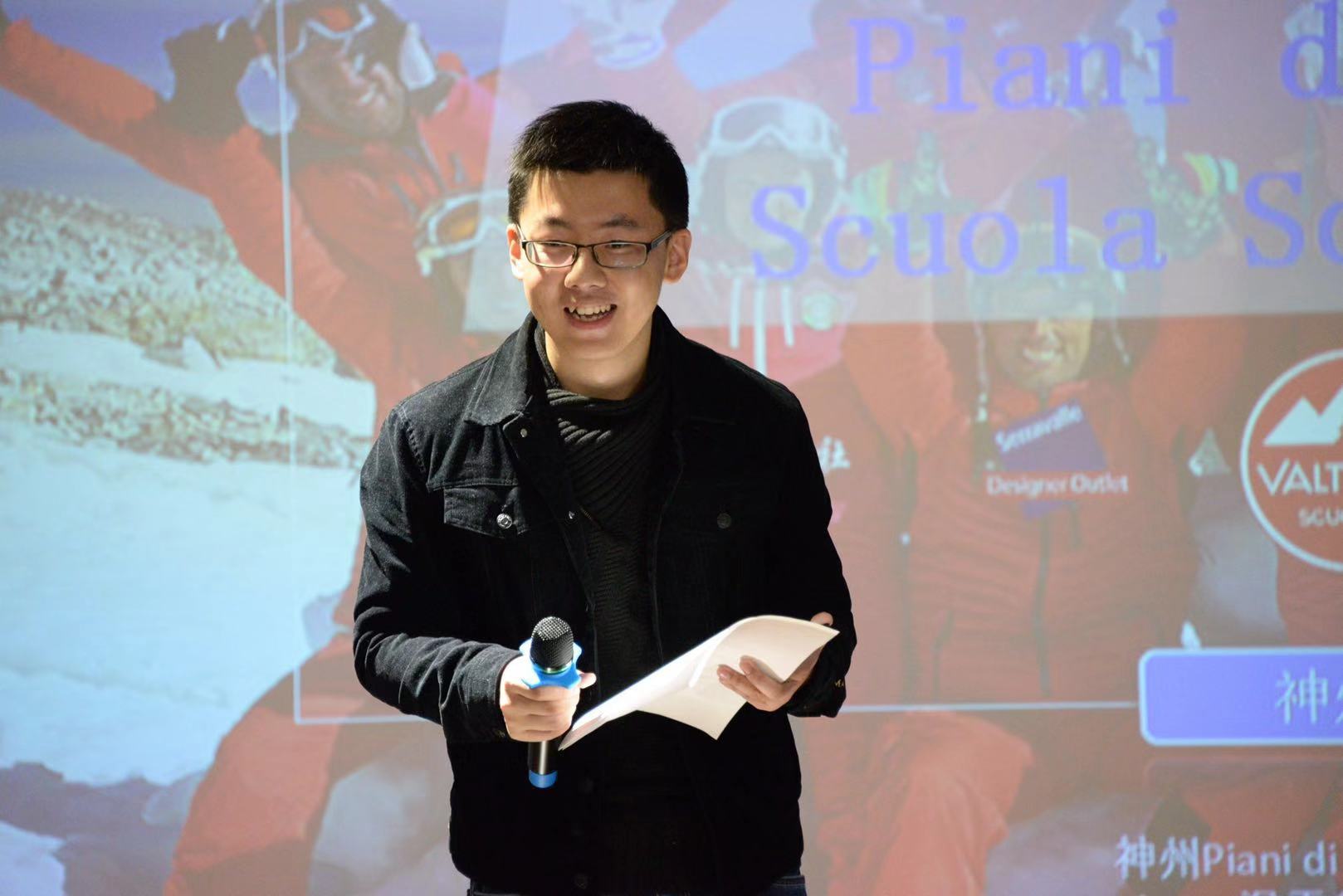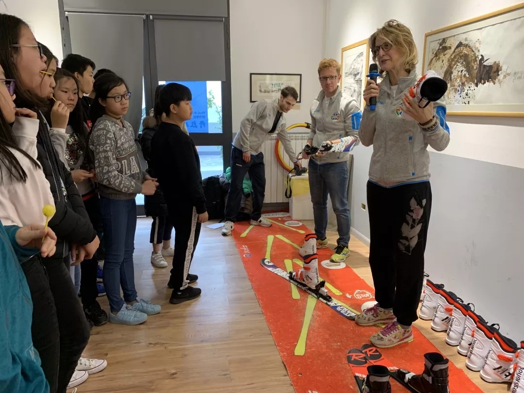神州旅行社市场部经理吴泽鹏主持开幕讲话,并介绍了意方合作伙伴scuola sci valtorta和今天来现场指导教学的滑雪老师们。Valtorta滑雪学校有34名专业的滑雪教练,教师团队对儿童和青少年的滑雪教育有着丰富的经验。