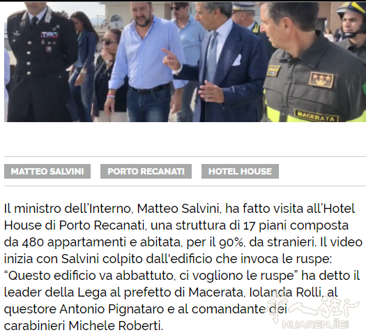 涉案的这栋大楼今年9月份内政部长Matteo Salvini曾现场查看了这栋楼,这里共有17层楼,480套房子,百分之九十的住户是外国移民。当时Matteo Salvini曾说应该要叫来推土机把这里都给推倒......(alexzou编译)